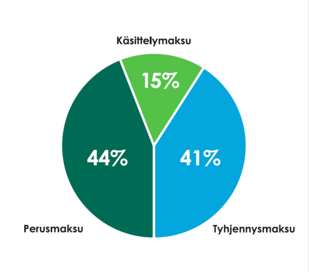 Käsittelymaksujen suuruus vuositasolla riippuu astioiden tilavuudesta ja tyhjennysvälistä.