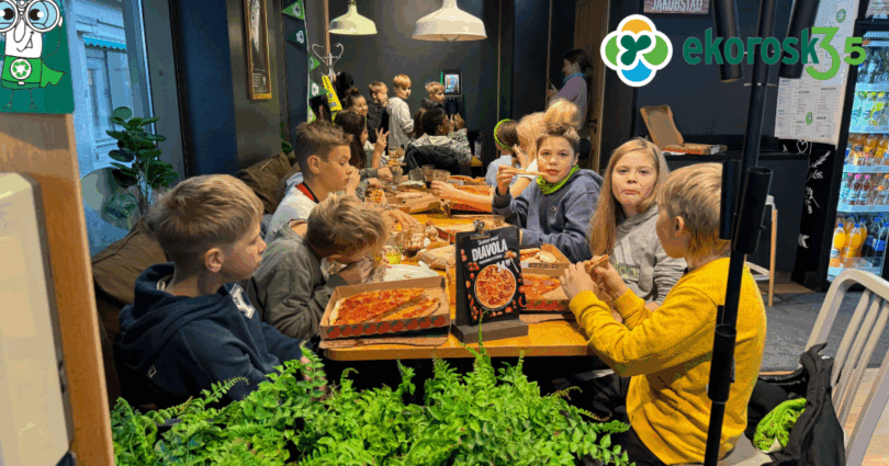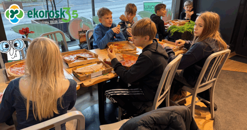 Palkintona koko luokka pääsi pizzalle Kotipizzaan. Mahduimme kaikki sisään, vaikka jokainen vapaa jakkara otettiin käyttöön. Pientä säätöä tuli limuautomaatin kanssa, mutta lopulta kaikki saivat vatsansa täyteen herkullista pizzaa.
