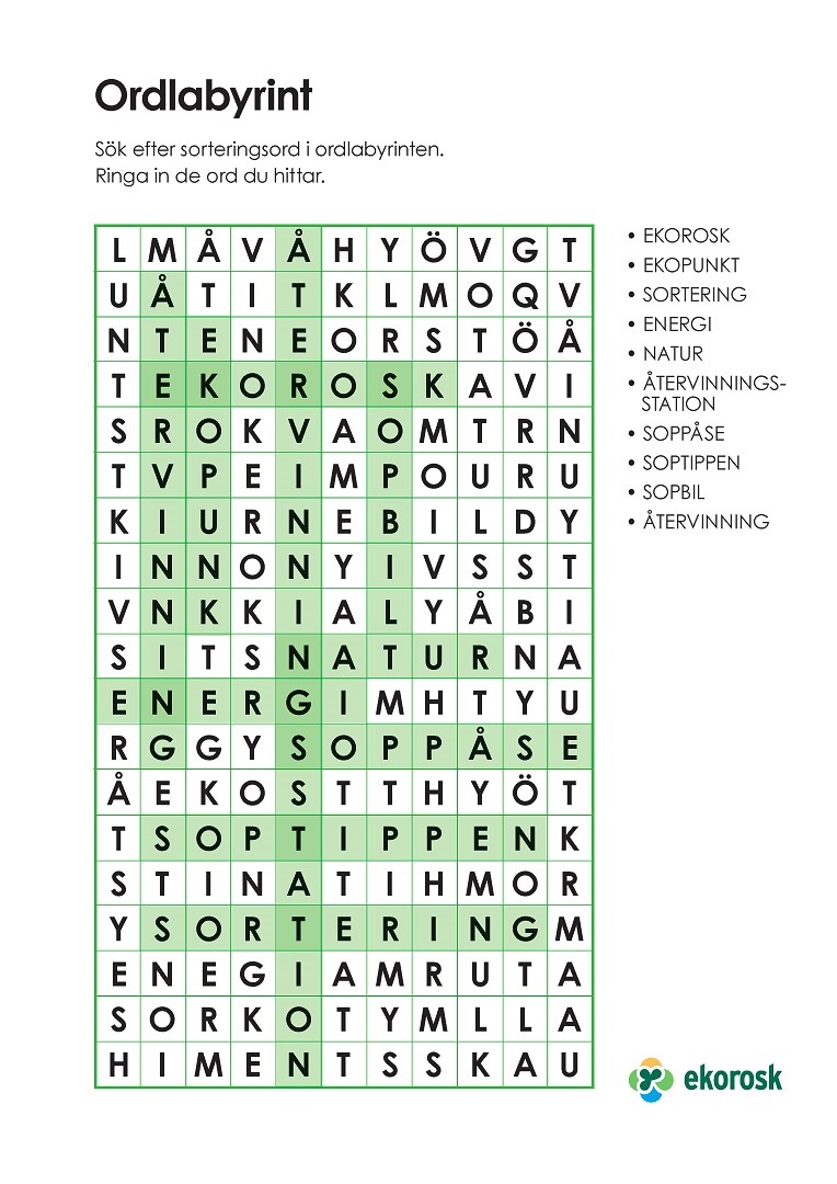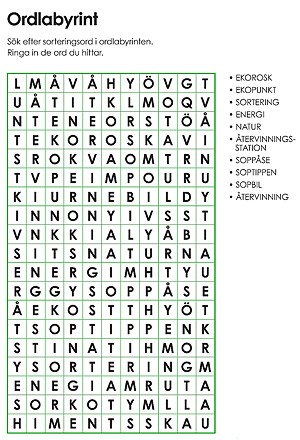 Sök efter sorteringsord i ordlabyrinten! Ringa in de ord du hittar.